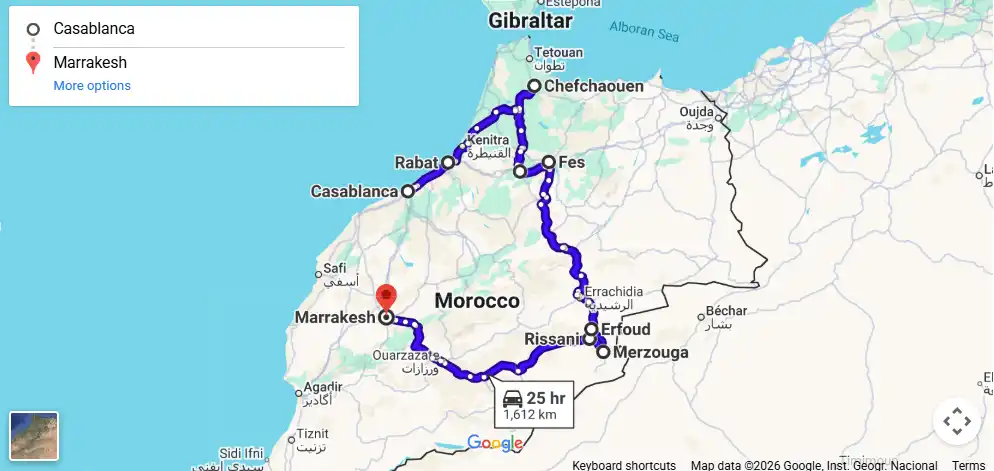 For some off-road sections especially around Merzouga dunes, Dades Gorges, and Atlas mountain regions a 4×4 vehicle is highly recommended. All our Morocco desert tours already include the appropriate vehicle and an experienced driver familiar with local desert roads and mountain passes.