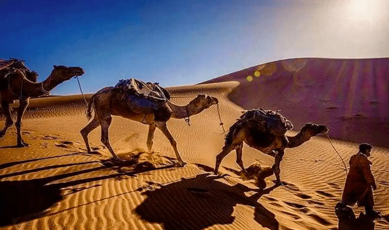 Visit legendary sites such as the Kasbah of Ait Benhaddou, Ouarzazate, Dades Gorge, and the stunning Todra Gorge. Continue toward Merzouga, where the majestic Erg Chebbi dunes rise like golden waves from the desert.